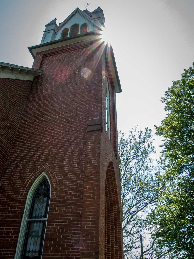 I drove through it, to figure out where to park and how much area I should plan on walking, and at the end of the little village I found a Church of the Brethren at the top of a hill. I drove to the lot behind the church to park.